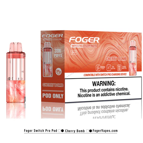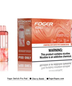 Buy Cherry Bomb Foger Switch Pro Pod | 30K Puffs at Fogervapesofficial.com. Enjoy bold cherry flavor, dual modes, and USB-C recharge in a long-lasting vape device.