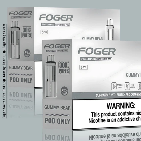 Gummy Bear Foger Switch Pro Pod 30K Puffs delivers sweet, fruity candy flavor with smooth vapor. Features dual vaping modes, USB-C recharge, and mesh coil tech.