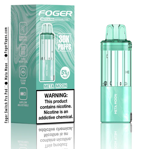 Meta Moon Foger Switch Pro Pod 30K Puffs offers a mysterious fruit blend with a cool finish. Enjoy dual vaping modes, USB-C recharge, and mesh coil smoothness.