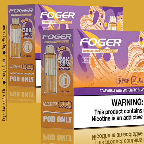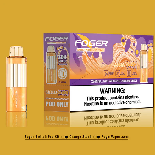 Orange Slush Foger Switch Pro Pod 30K Puffs delivers icy citrus flavor in every puff. Dual-mode vaping, USB-C recharge, and mesh coil technology for a smooth vape.
