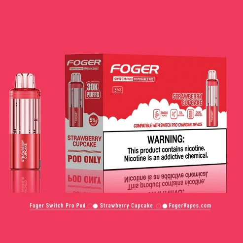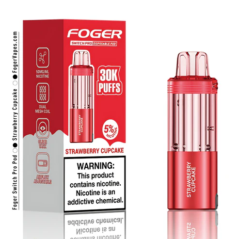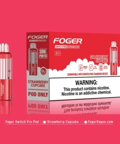 Enjoy the sweet and creamy taste of Strawberry Cupcake with the Foger Switch Pro Pod 30K Puffs. Features dual modes, USB-C rechargeable battery, and smooth vapor.